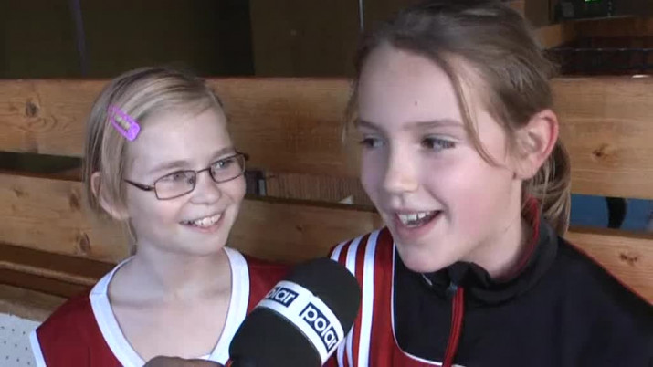 Anketa, basketbalistky: "My jsme z Hranic a je nám tady dobře. Hraje se nám dobře, zatím jsme všechny zápasy vyhrály." "Všechny zápasy jsme zatím nevyhrály, ale máme naději, že bychom teď mohly vyhrát."