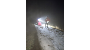 Následovala další náročná záchrana dvaačtyřicetiletého muže, který upadl na namrzlém terénu během sestupu z horské chaty Kamenitý.