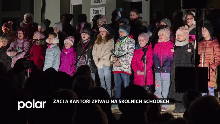Žáci a kantoři z Palkovic si společně zazpívali vánoční písně na školních schodech