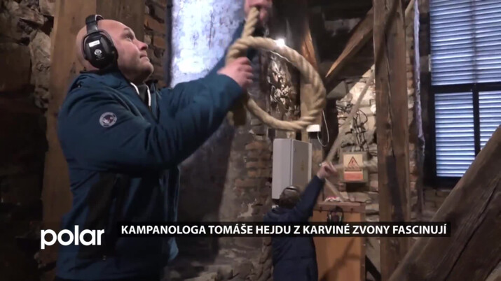 Tomáš Hejda, diecézní kampanolog: "Máme tady zvon z roku 1617, který byl ulit po druhém požáru města Fryštátu. Je na něm latinský nápis Post Igne po požáru Fryštátu, má tam i svoje takové ty zkratky, které vlastně, a myslím, že to je i nejcennější zvon tady jakoby ve věži."