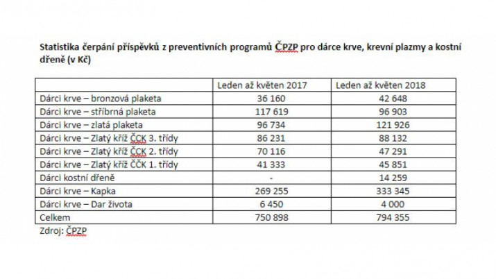 Pravidelné dárce, držitele Janského plaket, respektive držitele Zlatých křížů Českého červeného kříže, třetí největší pojišťovna v zemi ČPZP odměňuje v rámci svých preventivních programů příspěvky ve výši 500 až 3 500 Kč. Pro dárce kostní dřeně má příspěvek až 6 000 Kč. Dlouholetí dárci krve mohou v rámci programu Kapka využít od ČPZP příspěvek až 500 Kč. Na tyto programy ČPZP vynaložila za prvních pět letošních měsíců přibližně 794 tisíc korun, což je o šest procent meziročně více.