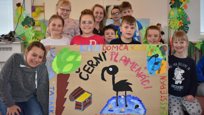 Bílovečtí piráti rozdělení do dvou skupin – Černá perla a Černí plameňáci – měli celý týden od 8 do 16 hodin doslova nabitý aktivitami. A samozřejmě si jako užili i vodních radovánek! Jak jinak?! Ve čtvrtek se nalodili na velký koráb, kterým odpluli na ostrov Olešná Aquapark. Po celý týden si navíc postupně vyráběli masky na závěrečnou karibskou party.