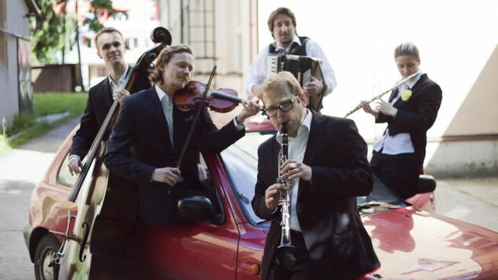 Létající rabín je pětičlenný ansámbl hrající klezmer – tradiční instrumentální hudbu východoevropských Židů, která největší rozkvět prožívala na přelomu 19. a 20. století. Východiskem jeho tvorby je tradiční zvuk a folkloristický přístup, cílem pak současná a zároveň nadčasová muzika. Instrumentální klezmer se v jeho tvorbě prolíná s písněmi v jidiš a dalších jazycích, k nimž kapela tvoří překladem vlastní texty, které věrny tradici jidiš folklóru jiskřivě reflektují naši dobu. Prostějovská skupina (založena v roce 2001) zaujala publikum na stovkách koncertů u nás i ve Švédsku, Polsku, Slovinsku. V roce 2010 dokonce koncertovala v USA (New York, Washington DC) a v letech 2017 a 2018 také v africkém Maroku (Essaouira, Casablanca, Tanger). Létající rabín hraje ve složení: Vojtěch Pospíšil (C klarinet), Jana Dosedělová (flétna, tsimbl), Miroslav Ondra (akordeon, zpěv), Vojtěch Peštuka (housle, zpěv) a Pavel Jurečka (kontrabas). Nechte se zlákat a podnikněte hudební výlet, který probudí jaro i ve vaší duši!