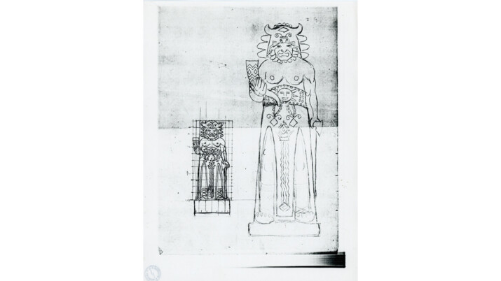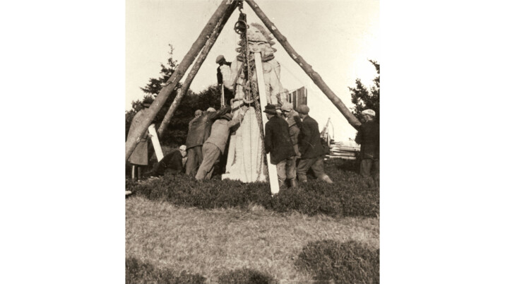 Žulová kopie stojí na hřebenové cestě mezi Pustevnami a poutní kaplí sv. Cyrila a Metoděje v Moravskoslezských Beskydech. Socha vznikla z 16,5tunového kvádru a její zhotovení v hodnotě jednoho milionu korun uhradil Pivovar Radegast. Uvnitř kopie sochy jsou navíc ukryty dokumenty a materiály pojednávající o autorech, původu původní sochy a Radegastově mýtu.