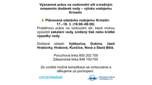 Termín prací (SmVaK): noc z 17. na 18. března 2026, 16:00–06:00