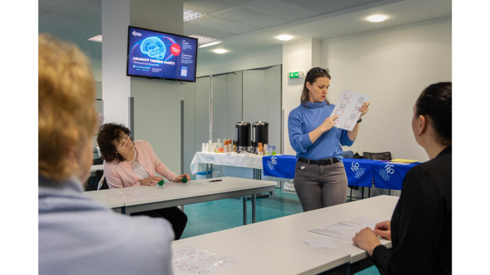 V tréninkovou laboratoř se letos poprvé proměnil přednáškový sál Domova sester. Zájemci byli rozděleni do malých skupin. „Zkoušeli si smyslovou stimulaci, dlouhodobou i krátkodobou paměť nebo reminiscenci. Kolegyně ergoterapeutka připravila cvičení na propojení hemisfér. Dá se říci, že kruhový trénink byl aktivní i pasivní,“ přiblížila náplň tréninku jedna z organizátorek akce Svatava Dvořáková, DiS., sestra z Centra pro kognitivní poruchy Neurologické kliniky FNO a LF OU.
