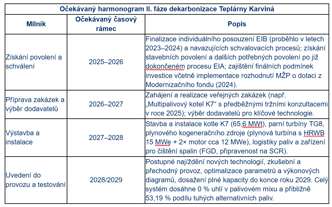 Celý proces druhé fáze dekarbonizace je rozložen do klíčových milníků od získání povolení až po uvedení zařízení do provozu. „Tento harmonogram je flexibilní v závislosti na dodavatelských řetězcích a regulačních schváleních, ale klíčovým cílem je jeho završení do konce roku 2029,“ uzavírá Miroslav Zajíček.