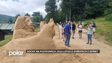 Výstava soch z písku na Pustevnách se letos věnuje africkým zvířatům. Sochaři tentokrát z písku vytvořili například opice, hrochy nebo lvy.