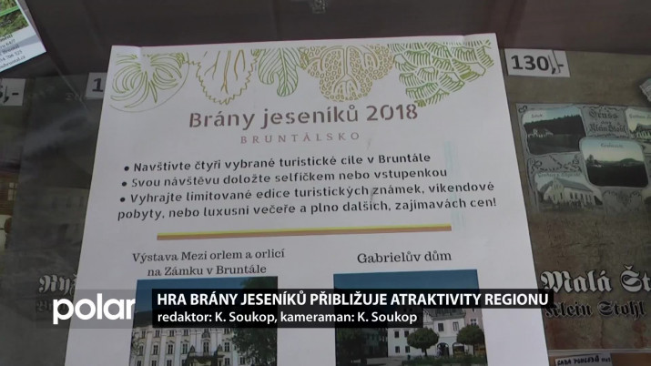Jana Štefková, pracovnice MIC Bruntál: „V Bruntále může turista navštívit výstavu Mezi orlem a orlicí. Tam je dokladem vstupenka nebo měšťanský Gabrielův dům, poutní kostel P. Marie Pomocné na Uhlířském vrchu nebo vápennou pec u Slezské Harty a tam je dokladem selfíčko.“
