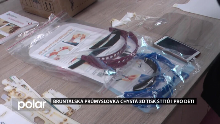 „My momentálně trošku utlumujeme výrobu štítů pro dospělé, obrátily se na nás některé základní školy i mimo město Bruntál s tím, že chtěli vytvořit nebo vyrobit model dětského štítu, takže kolegové navrhli prototypy dvou dětských štítů, jeden štít je vlastně celoobličejový, řezaný z plastu na laseru a další je vlastně kombinací dvou technologií kdy tato část je vlastně gravírovaná na laserové řezačce a zbytek je vytištěný na 3D tiskárně,“ říká ředitel SPŠ a OA Bruntál Jan Meca.
