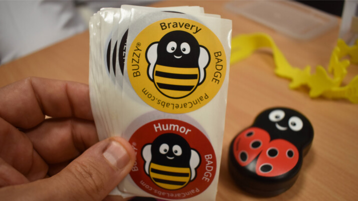 Tato pomůcka, která vypadá jako dětská hračka, se pomocí gumičky připevňuje na kůži v místě zákroku. Mladé pacienty rozptýlí chladem a vibracemi.