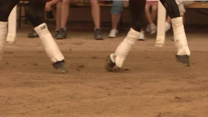 Anna Reinbergerová, drezurní kezdkyně: "Je důležitý, aby se obě zvířata navzájem snášela. To je první základní předpoklad. Výcvik obou zvířat probíhá odděleně a teprve ve chvíli, kdy jsou obě zvířata vyškolena se ta vystoupení dávají dohromady."