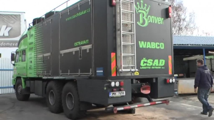 Martin Kolomý, automobilový závodník: "Na jednom autě máme vytažený motor, který je na posledním servise. Zkontrolovat, jestli je všechno v pořádku, protože to byl nový motor a tak se kontroluje, jestli je všechno, jak má být. Tady kluci po testování a závodě zkouší novou úpravu karoserie, snižujeme si nástavby, protože jsme měli problémy v dunách, že nám to praskalo."
