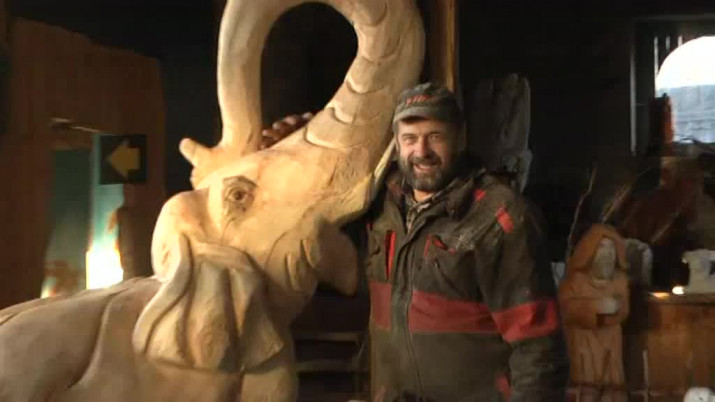 Jiří Halouzka, řezbář a galerista: "Ten jeden ze tří králů přijel na slonech a byla tady slonice s malým. Letos přibyl mohutný samec, slon v životní velikosti, takže to se děti dobře pomějí. Základem toho je rodina jako taková, a tak jsem vytvořil trojsoší, kde je otec, matka a dítě z jednoho kmene a bude to zasazené do toho betléma."