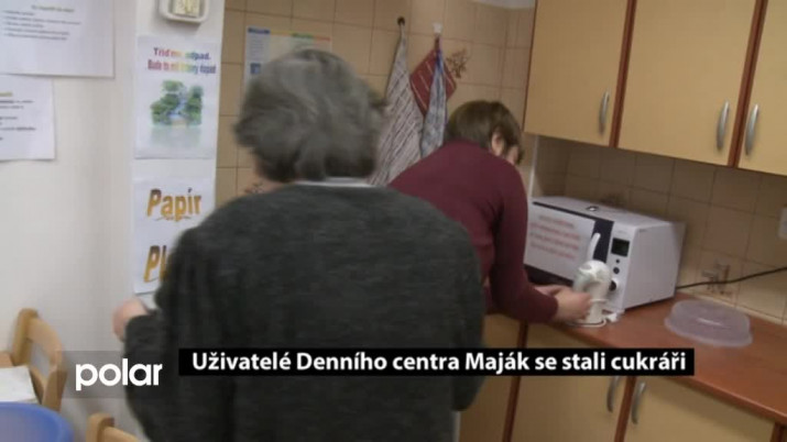 Terezie Kolčárková, pracovnice v sociálních službách Denního centra Maják: “Dnes máme program s názvem Na chvíli cukrářem. Zavedli jsme jej už loni na podzim, protože jsme se rozhodli posunout nase pečení a vaření trošku dál. Klademe si čím dál tím vyšší cíle, tak snad se nám to zase podaří. Není to o tom upéct nějakou buchtu s nějakým krémem, ale máme třeba dva krémy, dezert nastavovaný se sněhem, nad parou míchaný a podobně. Dneska, protože nám zbyly z Vánoc ořechy, jsme se rozhodli udělat ořechový řez s karamelovou vložkou. Museli jsme sehnat dortové oplatky a teď budeme dělat karamel. Už máme udělaný krém ze žloutků. Upečeme těsto a uděláme kapučínový krém. Musím podotknout, že jsme to nikdo ještě nedělali, tak snad nám to vyjde.”