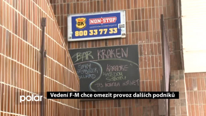 “26. února bude zasedání zastupitelstva, kde předkládám další návrh vyhlášky, která omezuje hostinskou provozní činnost, tentokrát se to týká dvou zařízení. To první je restaurace a hospoda non stop Cihla na Cihelní ulici, která je situovaná na sídlišti a hned vedle střední školy. Druhé zařízení je Kraken. My máme v posledních měsících spoustu stížností na chod této non stop diskotéky téměř. Máme spoustu stížností na rušení nočního klidu a hlavně vznik drobné kriminality v oblasti toho sídliště Slezská. Takže budu zastupitelům navrhovat, aby omezili provozní dobu, jak už to bylo v jiných případech, takže do 00 hodin a v pátek a v sobotu do 1 hodiny do rána. Myslím, že obyvatelé města mají právo se v klidu vyspat!” řekl primátor města Frýdku-Místku Micha Pobucký.