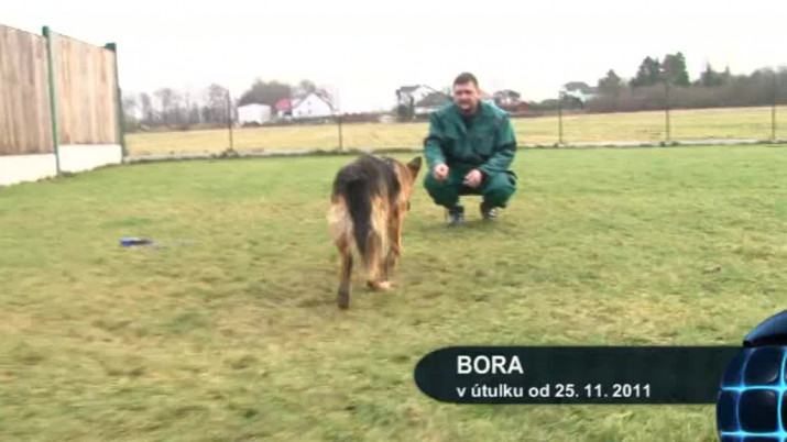 Bora: Sedmiletá fena čistokrevného německého ovčáka, dokonce s rodokmenem. Fenka se potulovala na ulici Selská. Jde vidět, že Bora prošla základním výcvikem. Potřebovala by však pravidelnou pozornost. Přítulná a hodná fena se nejvíce hodí k rodinnému domu se zahradou.