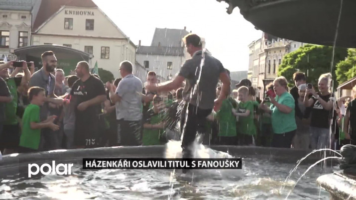 Fanoušci si pro čerstvé mistry připravili u kašny malé překvapení.