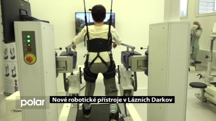 Tohle je paní Vlasta Kopsová z Náchoda. Deset let se pohybuje pomocí berlí, nemůže bez opěry stát. Jako jedna z prvních z pacientek v Česku se léčí pomocí unikátního rehabilitačního přístroje, které Lázně Darkov nově pořídily pro stimulaci chůze. Speciálního robota si paní Kopsová nemůže vynachválit.