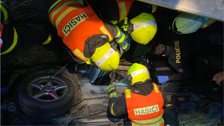 Jakub Kozák, mluvčí HZS MSK: "Po příjezdu k zásahu bylo zjištěno, že osobní automobil po nehodě skončil na střeše mimo komunikaci a uvnitř zůstali zaklíněni čtyři lidé - dva z nich v bezvědomí. Jednotka nasadila k vyproštění hydraulické nástroje, osoby byly na páteřové desce předány do péče přítomných zdravotníků."