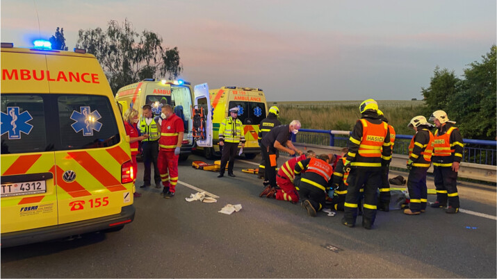 Hasiči následně pomohli s ošetřením a transportem do sanitek a vrtulníku.