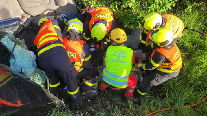 Po nehodě zůstal řidič zaklíněný v autě a utrpěl těžká zranění.