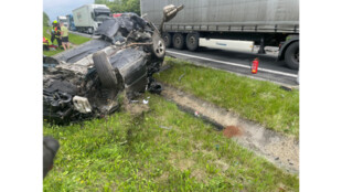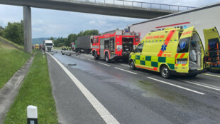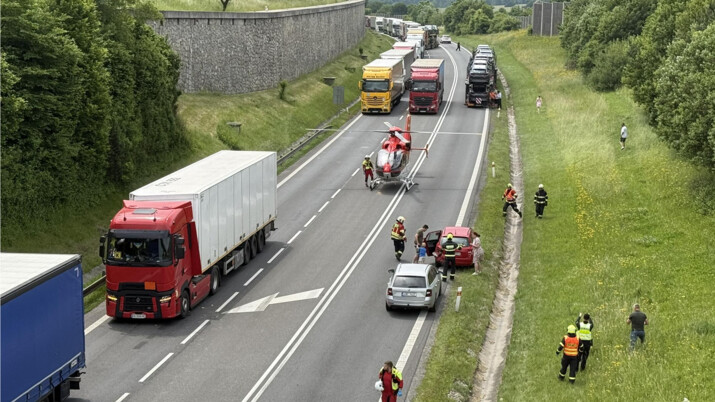 Řidič osobního vozu Škoda Octavia se v místě zúžení dvou jízdních pruhů ve stoupání pravděpodobně nestačil včas zařadit před předjížděné kamiony, vyjel ze svého pruhu a narazil do protijedoucího nákladního auta. Z auta zbyl šrot, on sám přežil s těžkými zraněními.