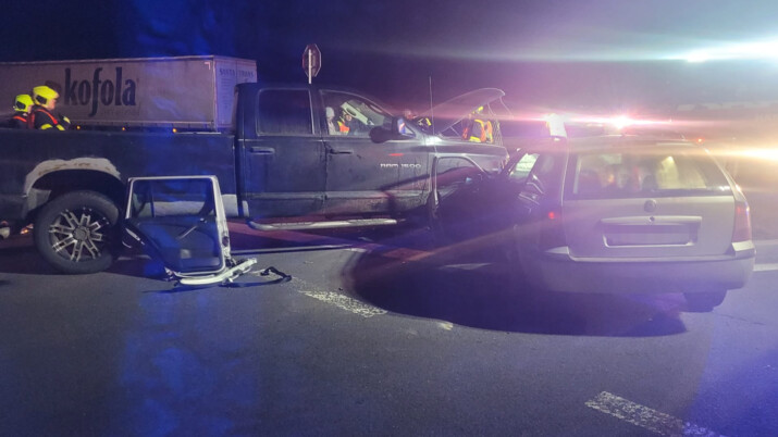 Podle policie mladý řidič pick-upu nedal přednost v jízdě a narazil do protijedoucího auta.