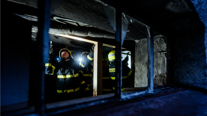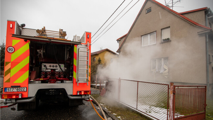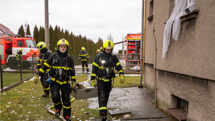 Hasiči po příjezdu našli dům v plamenech. Uvnitř objevili zraněného muže, kterého ošetřili a předali do rukou záchranářů.