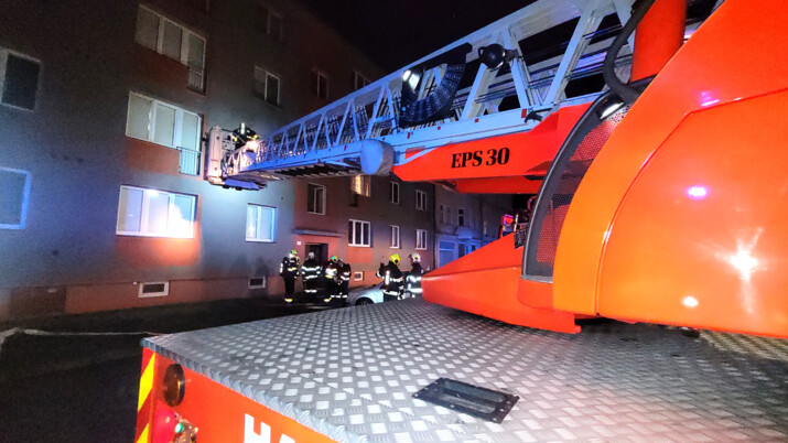 7 zraněných po nočním požáru bytu v Ostravě. Hasiči zachraňovali lidi ze střechy