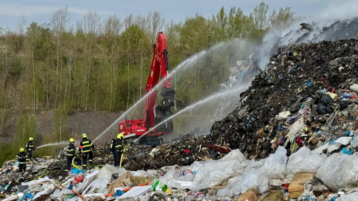 Hasiči likvidují požár skládky v Novém Bohumíně, na místě je i těžká technika