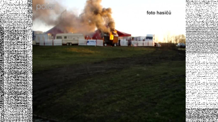 Požár maringotky cirkusu Carini.