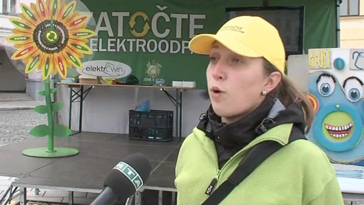 Staré televizory, počítačové monitory, vysavače a další drobné elektropřístřoje. To vše nosili lidé po celý pátek na Masarykovo náměstí. Probíhala tam osvětová akce pod názvem Zatočte s elektroodpadem. Staré přístroje nakonec zaplnily celý kontejner.