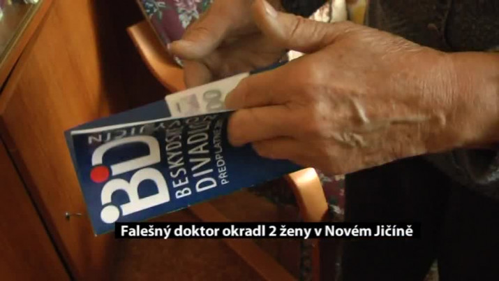 Za lékaře se vydává muž, po kterém teď pátrají policisté na celém Novojičínsku. Falešný doktor už stihl okrást dvě starší ženy - obě přímo v Novém Jičíně. Přišly o peníze a šperky.