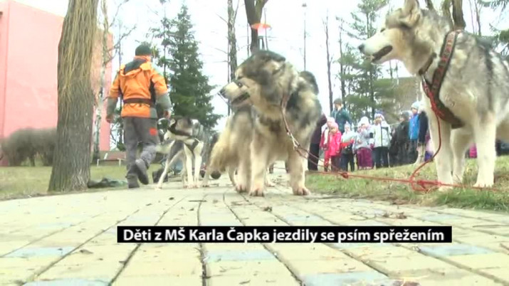 V MŠ Karla Čapka se dětem snaží zpestřit program vskutku nevšedními zážitky. V těchto dnech se kluci a holky projížděli před školkou se psím spřežením.