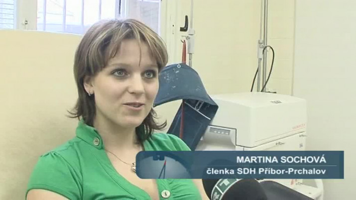 Martina Sochová, členka SDH Příbor-Prchalov: "Měli jsme to na vývěsce, že sbor dobrovolných hasičů může darovat, tak jsme se rozhodli u nás na dědině. Jsem tady poprvé."