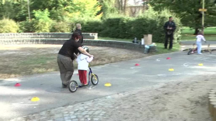 Ilona Majorošová, mluvčí Městské policie Nový Jičín: "Děti tady plní určité úkoly s dopravní tématikou a městské policie pro děti připravila malý slalom."