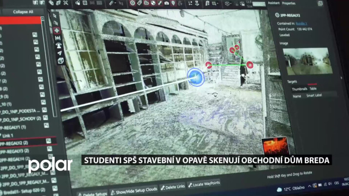 Skenování budovy mají na starosti studenti opavské stavební průmyslovky. Pracují tady v rámci školní praxe.