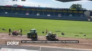 Roman Kovář, technický ředitel, SFC Opava: “Pokládka trávníků trvala zhruba 3 dny, kdy se nejdříve položil živý trávník a potom další dva dny trvala pokládka umělého trávníku.Zvládli to bez problémů, byli celkem šikovní, rychlí, takže všechno super proběhlo. Branky máme, zatím jsme je tady nedávali, protože bude probíhat ještě hloubková aerifikace, kde dojde k propíchání toho travního koberce, zasypání pískem, hnojení pískem, následně lajnování a umístění branek.”