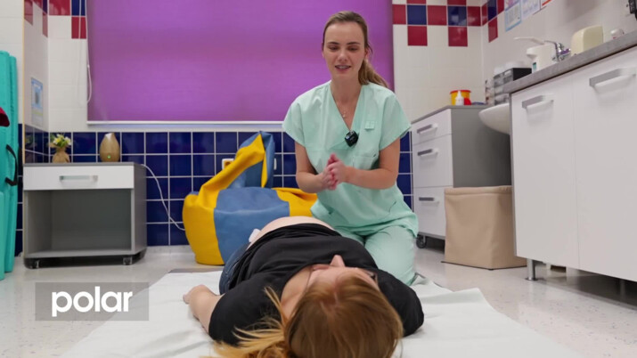 Petra Dörr, porodní asistentka, GPO, MS nemocnice Opava: “Například pokud je dítě koncem pánevním, nebo pokud jsou zádíčka dítěte otočená směrem k zádům maminky. Dělá se to pomocí různých technik. Jedna z nich je rebozo. Je to v podstatě taková alternativa, která lze nabídnout k zevním obratům, které se běžně také dělají tady v porodnici a lze je využít tam, kde třeba ten obrat není úplně možný.”