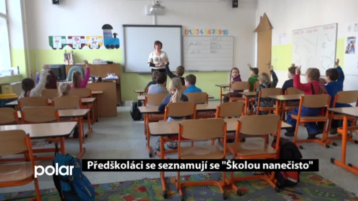 "Dívám se, jak to funguje ve škole," říká jeden z budoucích prvňáčků. "Už umím počítat do 110," dodává jeho kamarádka. V dalších hodinách se děti například seznámí se školní knihovnou a dalšími učebnami. Do Školy nanečisto budou chodit až do prázdnin.