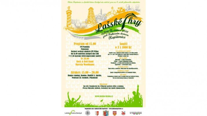 Po hudební stránce se o zábavu postará místní Cimbálová muzika Pramínky, Dechový orchestr mladých ZUŠ Příbor, Pokustone, což je název dvojice hudebníků pocházejících z malebných Hukvald, a hlavním hostem a závěrečným interpretem tohoto dne bude Rock&Roll Band Marcela Woodmana. Aby toho nebylo málo, Lašská brána Beskyd připravila doprovodnou soutěž o 3 x 1 000 Kč. K získání výhry je potřeba se vyfotit na 4 místech Lašské brány a své fotky poslat do 17. 6. 2016 do 17:06 na email info@lasska-brana.cz. Více informací naleznete na www.lasska-brana.cz.