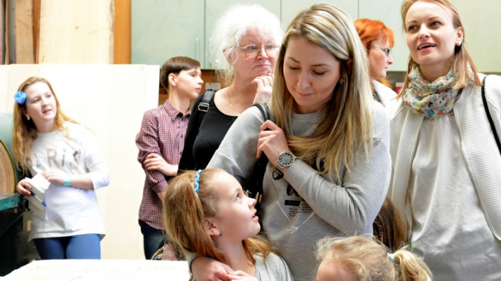 „A teď vám vysaju děti,“ prohlásí šéf ateliéru Martin Froulík a vzápětí jeho další slova přehluší hlasitý zvuk velkého vysavače. Skupina návštěvníků se právě nachází na stolárně, tedy téměř na začátku trasy, která je provede nejen divadlem, ale také celým procesem výroby nové inscenace. Děti si zkouší centrální vysavač na piliny, strkají do něj ruce, nebo si nechávají vysát vlasy.