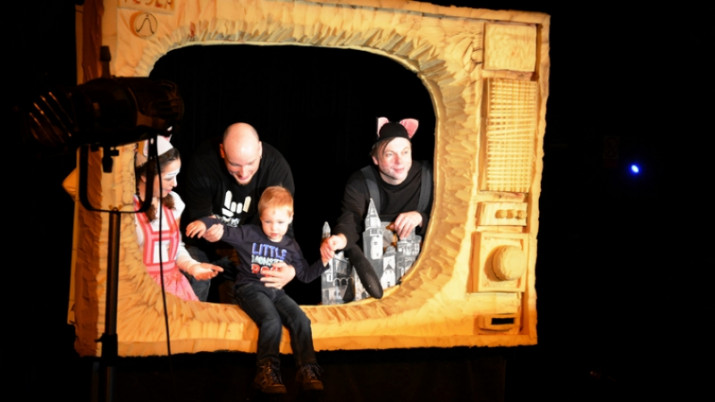 Opouštíme ateliér a jsme v půlce trasy. Pomalu se na naši návštěvu chystá i zvukař a osvětlovač. V rukávu mají slangové výrazy i zvukové a světelné efekty. Jenže v davu se začínají ozývat nesmělé dotazy těch nejmenších, kdy už přijde na řadu pohádka. Nakonec se po krátké zastávce na jevišti hlavní scény opravdu dočkají. Herecká zkušebna se proměnila v malý divadelní sál, kde Hana a Tomáš Volkmerovi předvádí vtipnou pětiminutovou pohádku s plošnými loutkami. Název je odzbrojující – Krtek a hovínko. I dospělým cukají koutky.