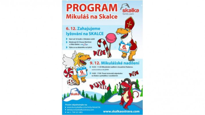 Na sobotu 9. prosince je pak pro děti a jejich rodiče připraven Mikuláš na Skalce. Malí i velcí návštěvníci se mohou těšit na Mikulášské nadílení s oblíbenou kouzelnicí Radanou či pravé čertovské odpoledne s hranou pohádkou a soutěžemi, ale i další zajímavý program a něco dobrého na zub. Vstup je pro všechny návštěvníky zdarma!