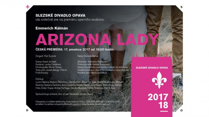 Soubor opery uvede 17. prosince od 19 hodin českou premiéru poslední operety Emmericha Kálmána Arizona Lady. Poslední scénické dílo velkého skladatele dokončil jeho syn Karel (Charles) Kálmán. Opereta měla nejdříve premiéru v Bavorském rozhlase a teprve potom na scéně v Bernu 1954. Libreto napsali Alfred Grünwald a Gustav Beer, do češtiny přeložil Jan Ondráček a české texty upravil Patrick Fridrichovský. Příběh se odehrává v roce 1920 v Arizoně, kde má farmu dcera maďarského emigranta, Lona Farrell. Lona řeší problémy s chodem farmy a také vztahové problémy ve svém životě, především s Royem Dexterem z Colorada. Jak dopadne tento westernový příběh a „kdo“ se skrývá za názvem díla, zjistíte při návštěvě představení tohoto titulu. Operetu uvádíme v české premiéře!!!