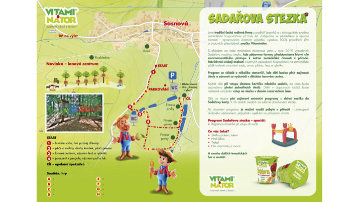 Program SADAŘOVY STEZKY - SPECIÁL, konaný 28. 8. 2021, se skládá z několika stanovišť, kde děti budou plnit zajímavé úkoly a zároveň se vydovádí v dětském lanovém centru.