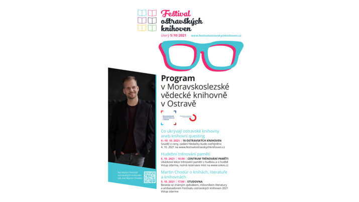 Ambasadorem letošního ročníku festivalu se stal zpěvák a velký milovník knih a knihoven Martin Chodúr, který o svém vztahu k literatuře povypráví v Moravskoslezské vědecké knihovně v Ostravě právě 5. 10. 2021 v 17:00 hodin. „Jsem opravdu vášnivým čtenářem. Kamkoliv přijedu, moje kroky směřují do knihkupectví a antikvariátů, a samozřejmě miluju knihovny, které vám dávají možnost přečíst spousty knih,“ zve Martin Chodúr.