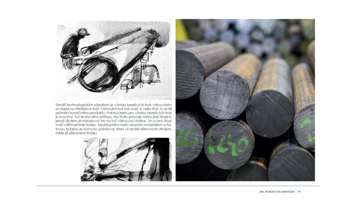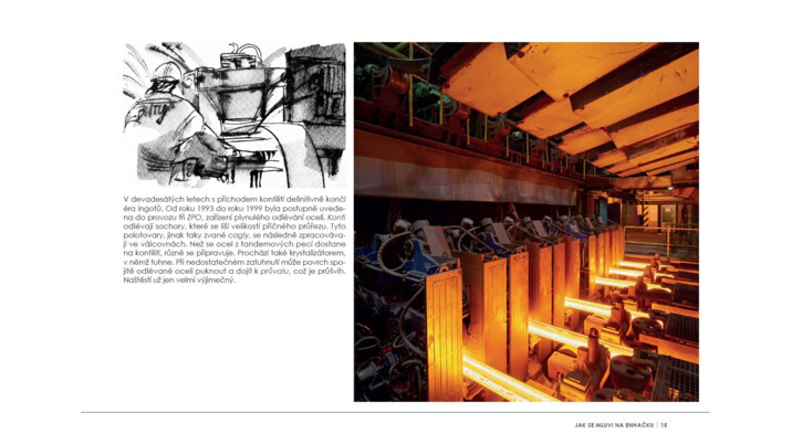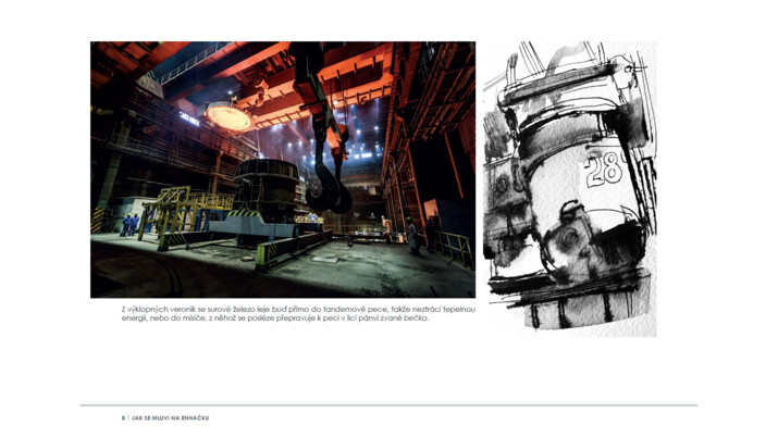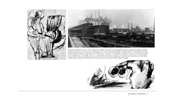 Soudobé i historické fotografie z obrazově atraktivních provozů huti doplňují kresby známého ostravského kreslíře a karikaturisty Václava Šípoše, který knihu zalidnil typickými postavami s výraznými charaktery.