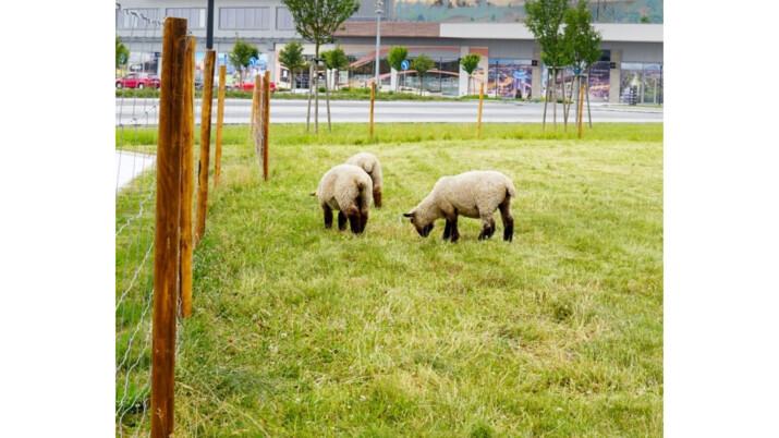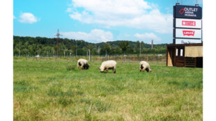 Ovce jsou umístěny na ploše, která se nachází v přední části areálu. Outlet připravil koncept využití volného travnatého prostředí s docílením alternativního zpracování travin. Je známo, že ovce se nejen umí postarat o spásání travního porostu, ale také zajišťují správné hnojení trávy a půdy samotné. Ovce jsou v uvedených prostorách k vidění od konce června a mají k dispozici ohrazený výběh, jehož součástí je i malý přístřešek zajišťující osazenstvu úkryt před horkým sluncem, deštěm i bouřkami. Dostávají správnou péči a výživu v podobě minerálního lizu, speciálních granulí, a pečlivě se u nich dohlíží na dostatek tekutin.